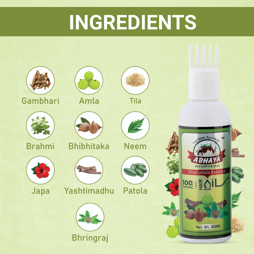 - Ingredients: Amla, Bhringraj, Brahmi, Neem, Yashtimadhu, Bibhitaka, Gambhari, Tila, Patola, Japa